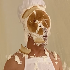 Garakguy47 was surprised by MessyLady_v2 with a big sloppy cream pie to the face